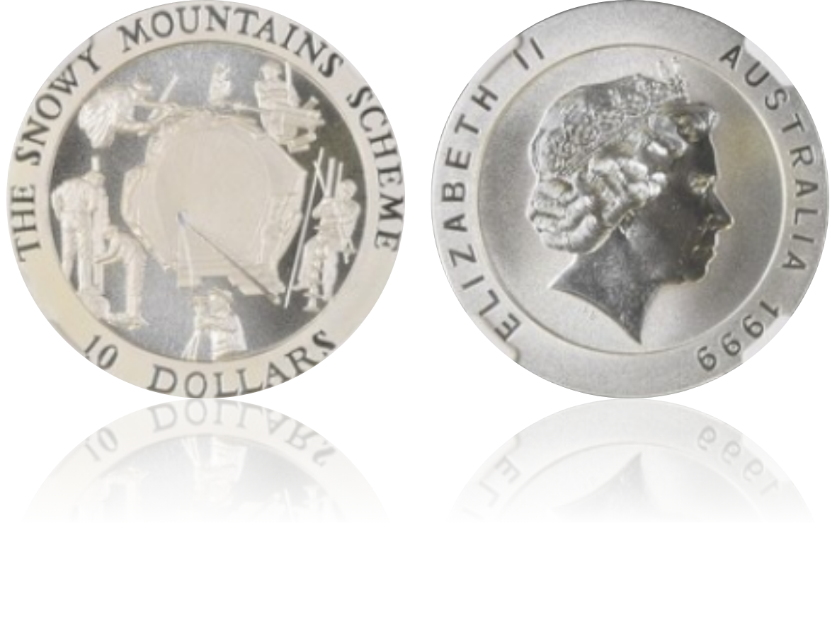 ※1999年発行の「スノーウィー・マウンテンズ・トンネル(Snowy Mountains Tunnel)」記念10ドル銀貨(Fine Silver 0.999)は2枚セット(トンネルとダムの両面デザイン)で発行され、発行枚数は合計20,000セットです